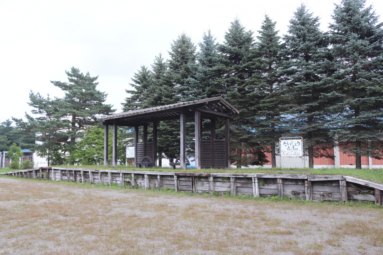 1987年に廃止された広尾線の大正駅跡の広場です。ホームが残るだけですが、ここに駅があったことがわかります。駅名標も2つありますが、当時のものではなく新たに設置されたもので、流れるような文字が印象的です。