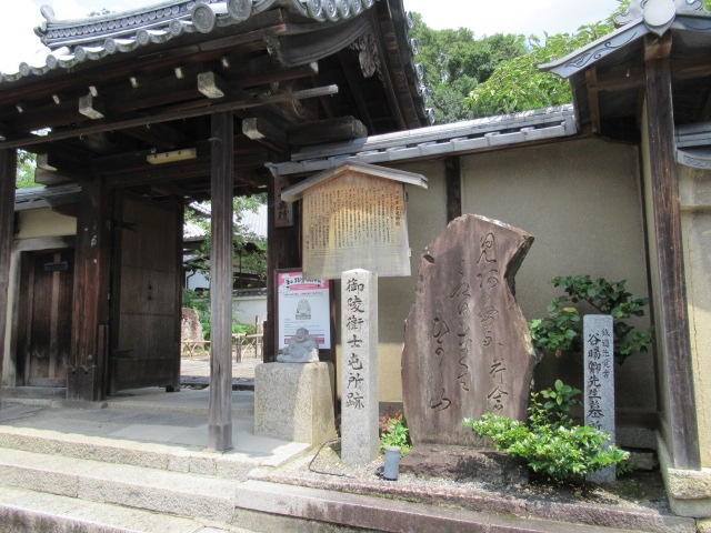 新型コロナウイルスの中、世間は自粛ムードの中でマスクは手放せませんね。ワクチン接種を二回終えて、他人に迷惑をかけいよう心掛けて旅をしてきました。東山の西側に続く「ねねの道」沿いに高台寺塔頭の月真院さんの境内にある「月真院 (御陵衛士屯所跡)」へ立ち寄りました。山門前には駒札、石碑がありました。そして東山路傍の触れ仏様の像が寄り添っていたのが印象的ですここは初めてです。第121代・孝明天皇の陵(後月輪東山陵)を守るための組織で高台寺塔頭の月真院を屯所として、新選組と分かれた伊東甲子太郎氏が御陵衛士に任命されて、ここに屯所とし、同志達14名と共に御陵衛士として短い歴史を刻みました。ここは非公開となっています。大勢の観光客であふれる東山ですが、とても静かでひっそりとしていました。静かに山門前で手を合わせました。