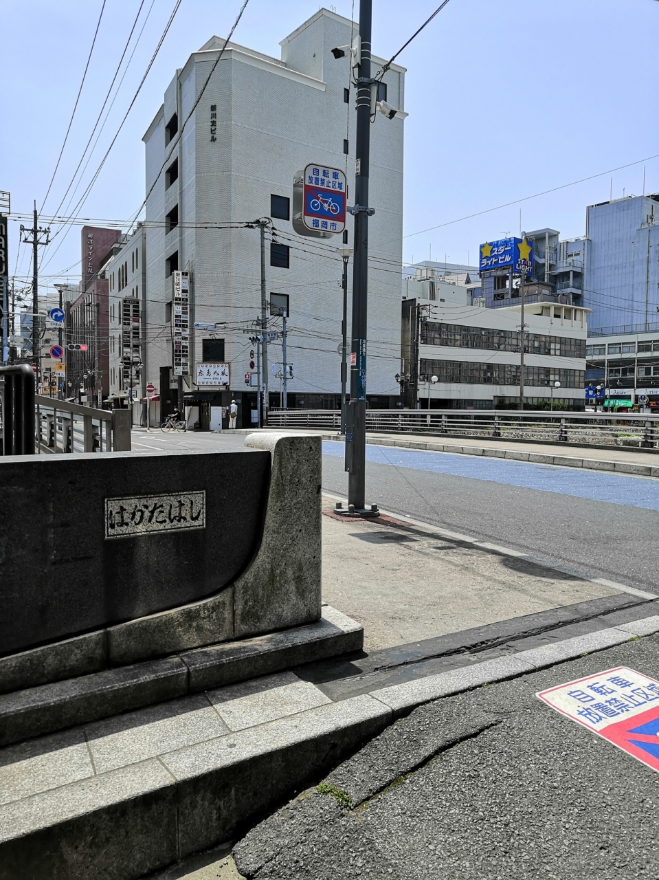 博多川にかかる橋の一つで、冷泉通りにある大乗寺跡を見学した後で、そのまま通りを西に行くとこちらの橋がありました。まあ繁華街などでそこそこ車も歩行者も往来がありますが、橋自体に特に特徴は感じませんでした。