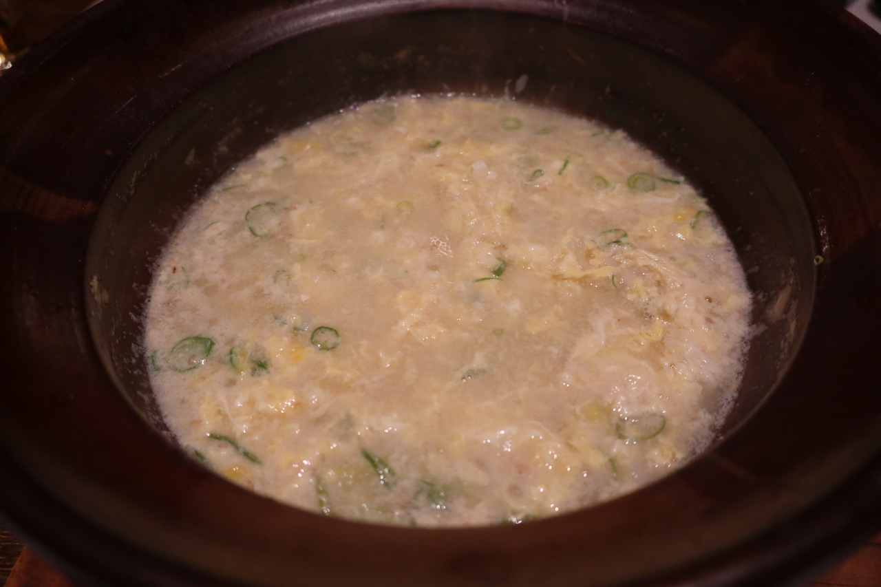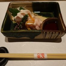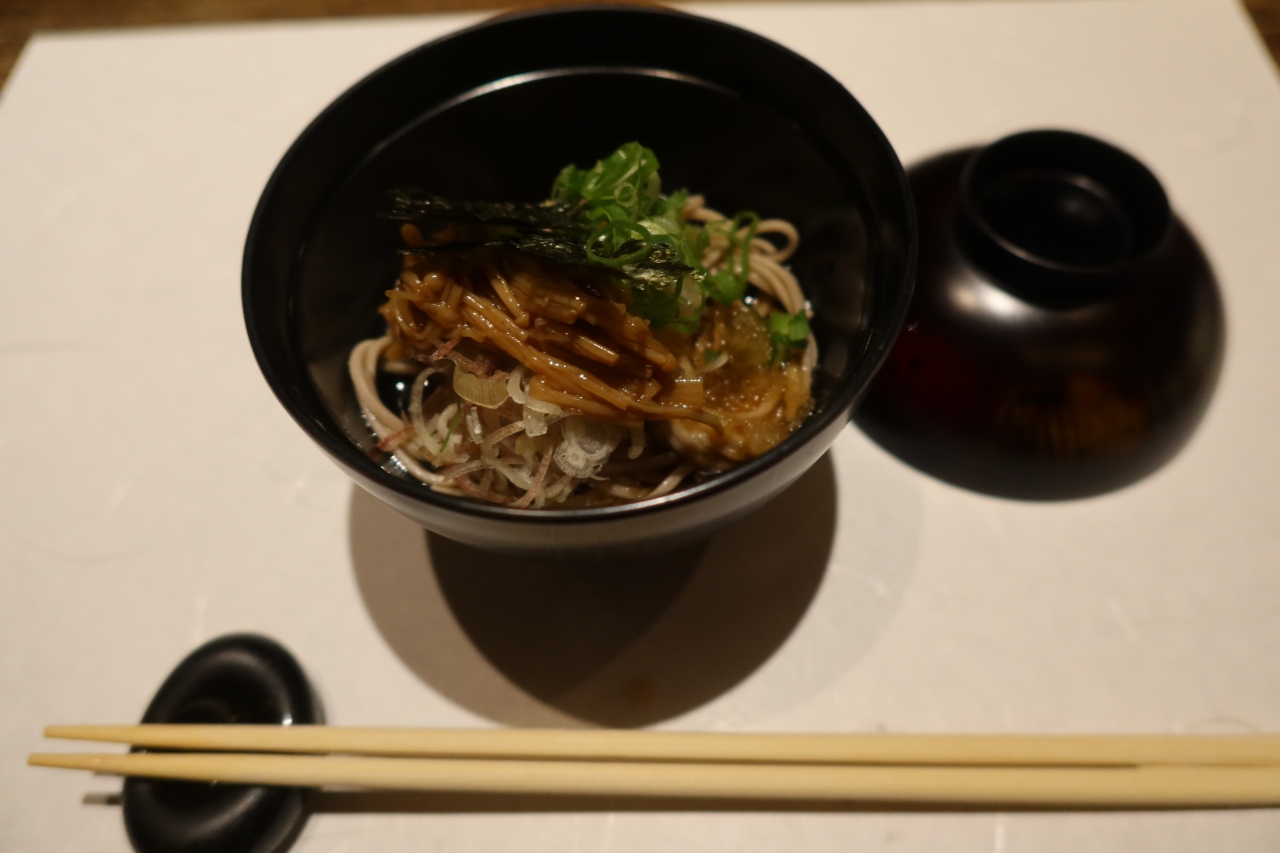 烏丸通りから少し下った三条柳馬場通りの細い路地を入った先にある隠れ家的な鳥料理と日本酒のお店です。古町家を改装したような風情のある店内はカウンター席とテーブル席がありましたが、通されたにはテーブル席。水炊きのコースを頂いたのですが、色々とアレンジされた丹波地鶏がどれもこれも美味。お酒が進む料理なのですが、蔓防のため酒の提供がなくちょっと残念でした。
