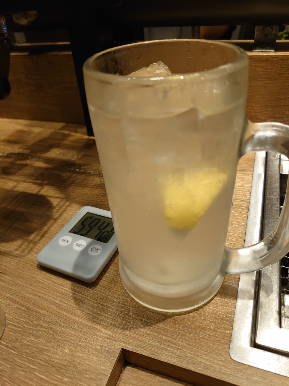 美味しいお肉とレモンサワーをたっぷり堪能し、目標の4杯飲んでお会計しても時間は余裕だった。
