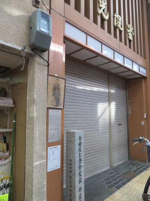 あまりにも有名な坂本龍馬が襲撃された寺田屋です。そちらの女将の名前がお登勢さんです。行ったときはシャッターが下りていましたが、和菓子屋さんの前に石碑があって、セピア色の写真が飾られていました。写真があると嬉しくなりますね。