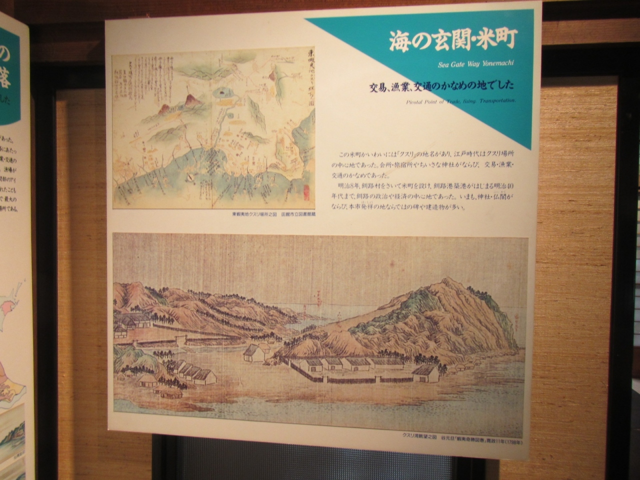 付近の古い家屋を利用した郷土資料館のような建物で、昔の暮らしが分かるように調度品を展示しているほか、釧路の歴史(江戸時代のクスリ場所など)、文化(石川啄木の来釧や釧路の文学者など)が分かる簡単な展示がしてあります。