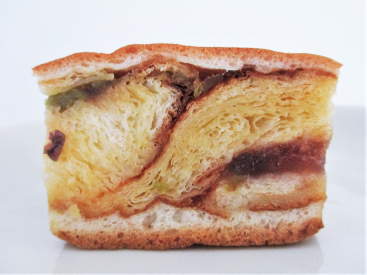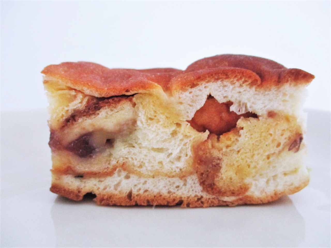 残ったパンを混ぜ合わせて新しい生地で包んで焼いた感じのパン。