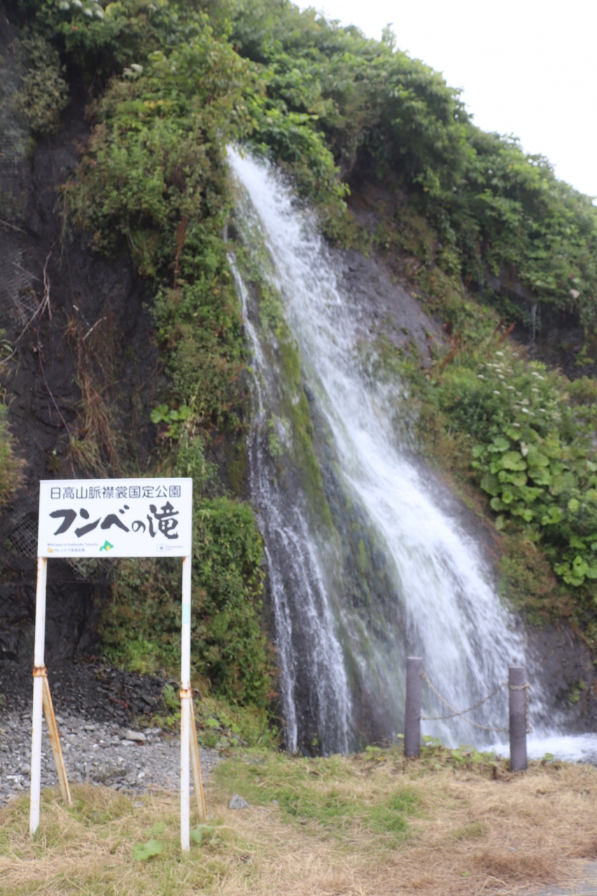 えりも岬から広尾へ、黄金道路も終わりかけ、覆門を抜けた道路沿いにあります。えりも岬側から見ると、小さな1本の滝という感じですが、進んでみると幾筋もの滝が流れています。高さはありませんが、白糸のごとくで、水のカーテンです。ここを過ぎると広尾です。
