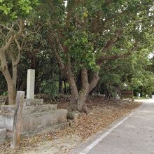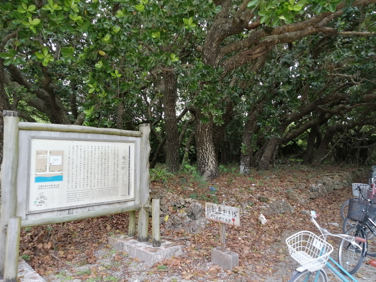 跡なので本当に“跡”しか残っていません。サンゴの塀?の残骸が残っているのみです。カイジ浜を自転車で訪れた方なら自動的に見学終了となるスポットです。