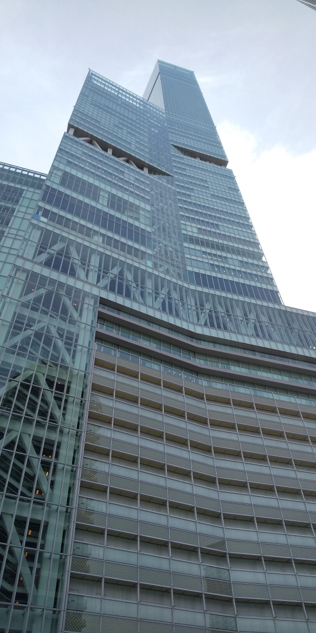 大阪のミナミの名所となったあべのハルカス、高さは300メートルもあるそうです。伊丹空港につく前に左側の窓からもはっきり見える超高層ビル。近鉄百貨店や外資系高級ホテルに美術館などが入るすごい高層ビルです。大阪にきたなら是非みたい名所