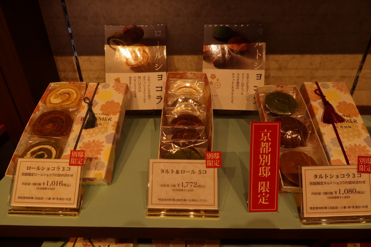 京都文化博物館のある三条通りを一筋東に入った先にベルアメール 京都別邸があります。日本に合うショコラを謳うショコラ専門店が京都にオープンしたお店です。町屋を改装した店内にはこの店舗でした買えない限定ショコラが沢山並んでいます。ショコラの味はいうことなしなのですが、ちょっと値段が高いですね。