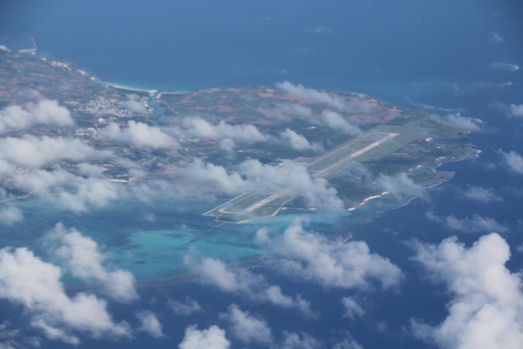 南風の吹く日に、下地島に到着する飛行機はサンゴ礁の海を超低空で渡ってやってきます。