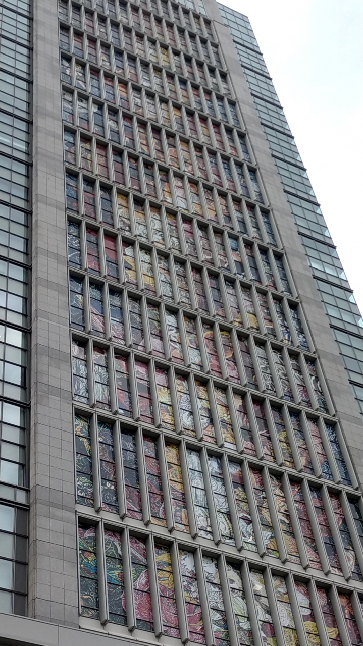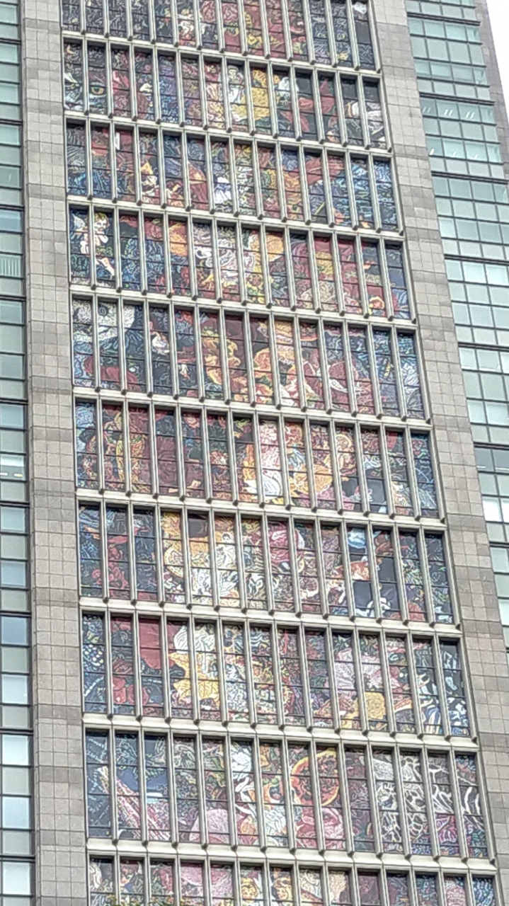 ビルの窓に施されたアートなので近くでゆっくりと鑑賞することはできませんが、スケールの大きさにびっくりしました。