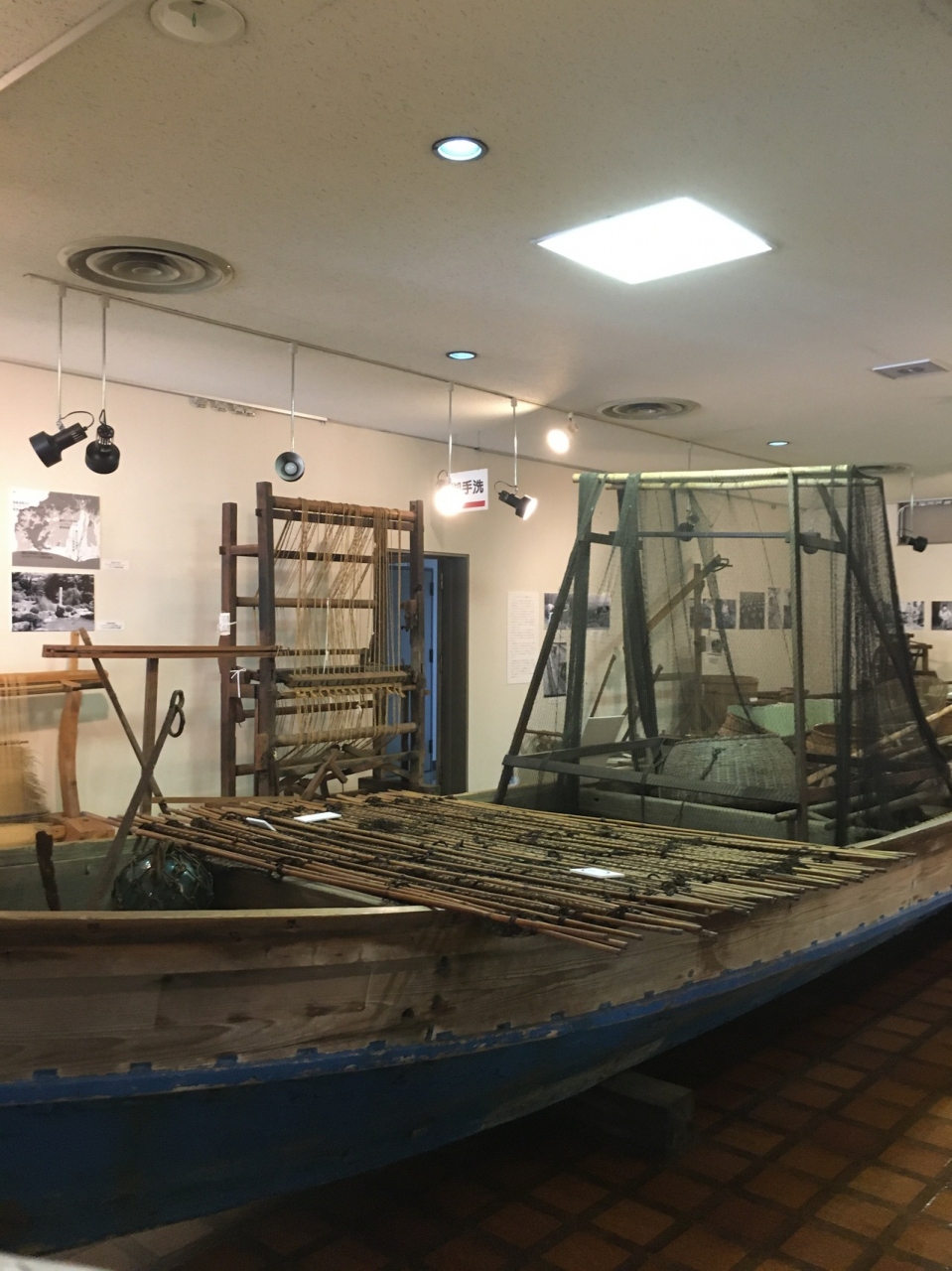 建物の横には藁葺きの建物があり静岡県の有形民族文化財でした。1.2階に展示物がある無料の施設で、1階には浜名湖で利用されていた小舟の展示がありました。銅鐸の展示が多く、詳しく説明文がありました。昔の写真も展示してあります。