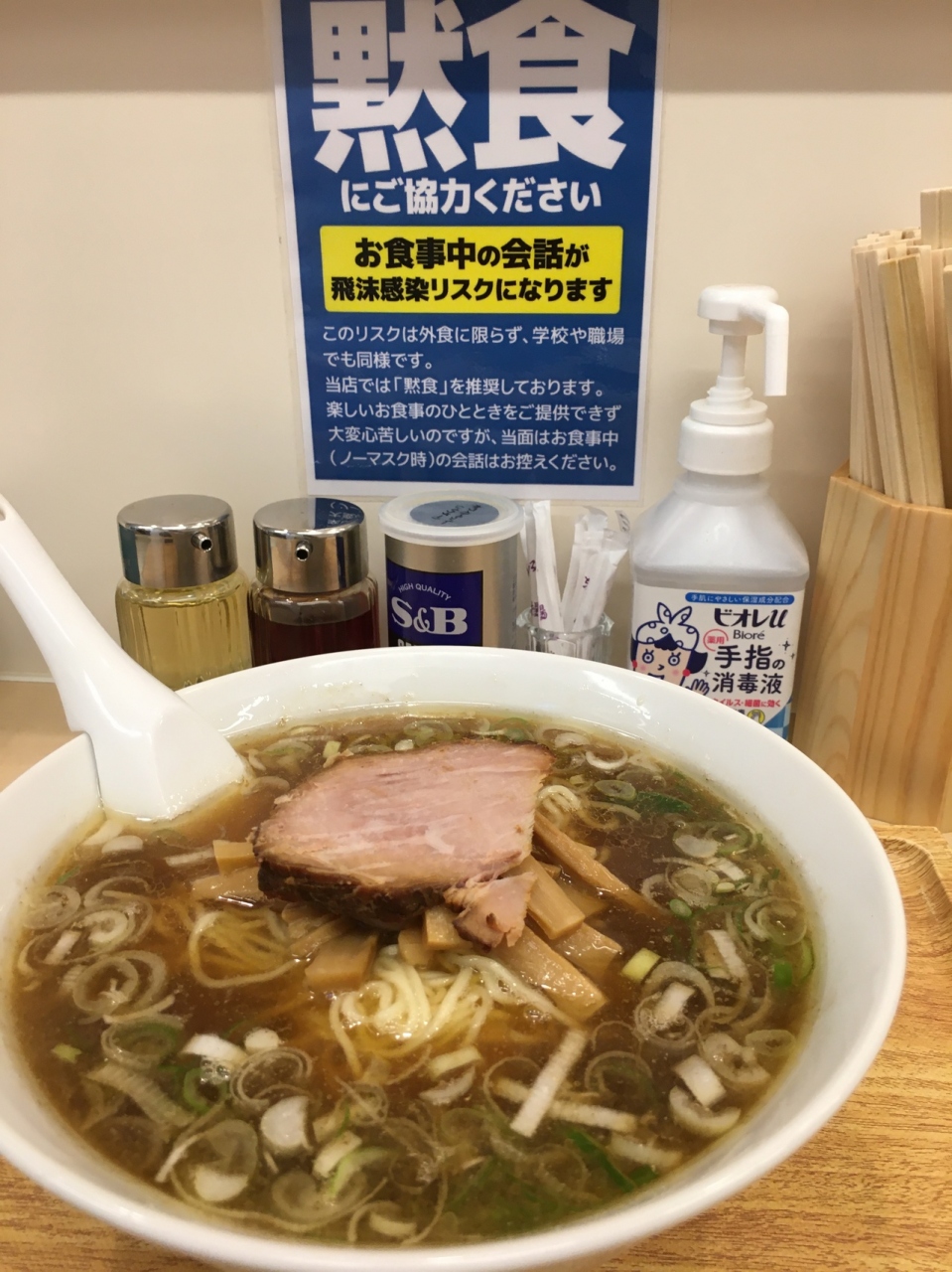 カウンター8席のみの新しく綺麗な店内でBGM等の音楽は流れていなく、ラーメンを作る音のみが響いていました。。自動食券機が一つあり、現金他、クレジットカード、交通系電子マネーが利用出来ます。ラーメン1.5玉790円を食べました。スープには油が浮いているせいか冷めにくく、最期まで温かいスープを飲むことが出来ました。煮干しのスープで高級感がある醤油味のスープでした。小さなネギとチャーシューが入っていて、中華そばと言った麺でした。