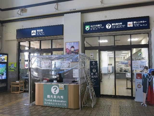 改札を出てすぐの所なので分かりやすいです。まずは配布されている観光マップを手に入れて、