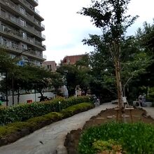 通りの中央は遊歩道になっていて、洗面所もありました。