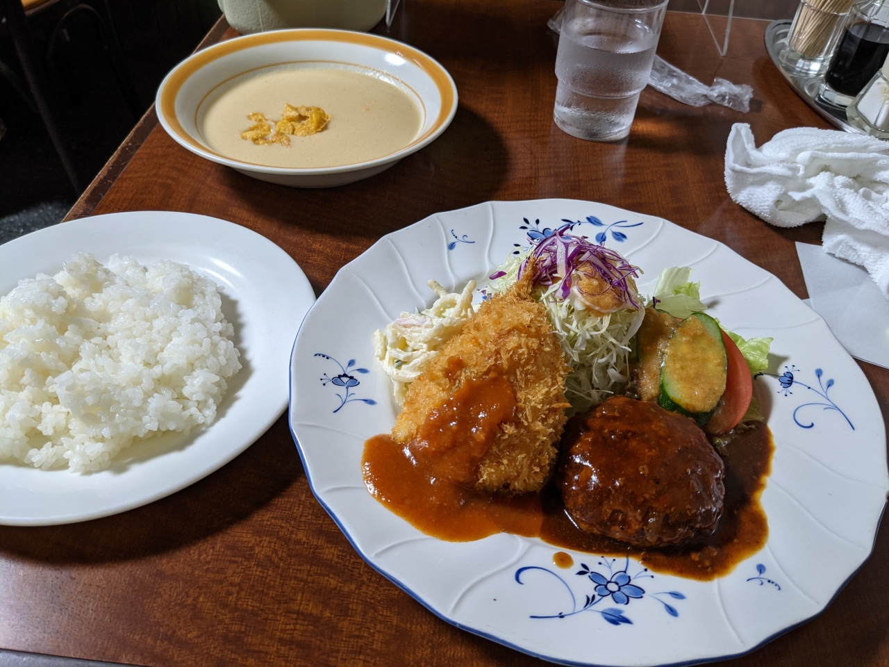 金沢では有名なお店で、各種ガイドブックでも取り上げられています。武家屋敷群の近くにあるのでセットで訪問するとよいでしょう。ハントンライスなるものが有名のようだ。夜時間でもランチセットが残っているとオーダー可能。ボリュームもあり、とてもおいしかったですね。