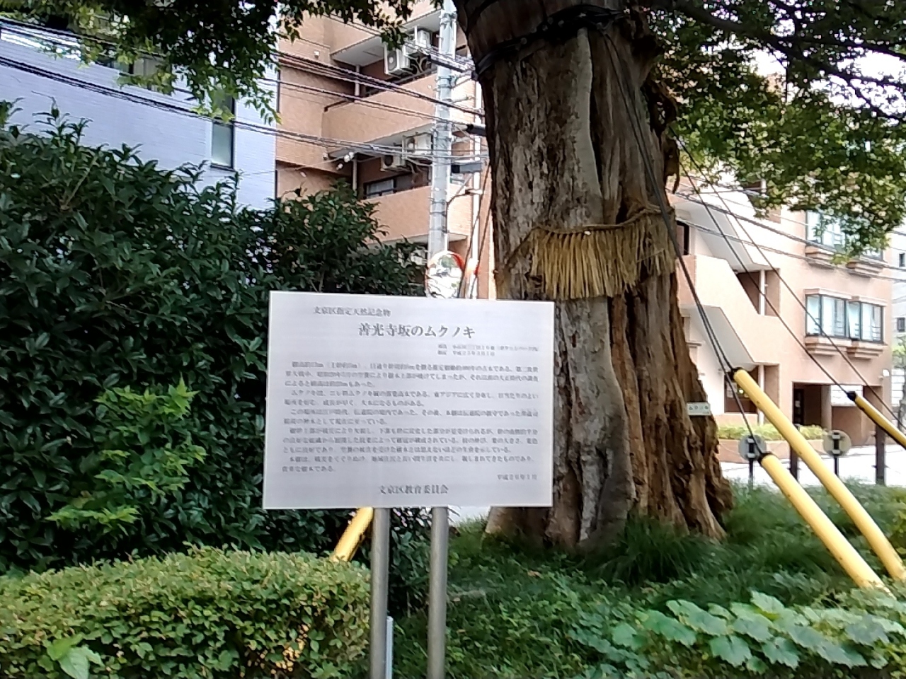 文京区教育委員会が作成した案内板がむくの木のそばに掲示してありました。