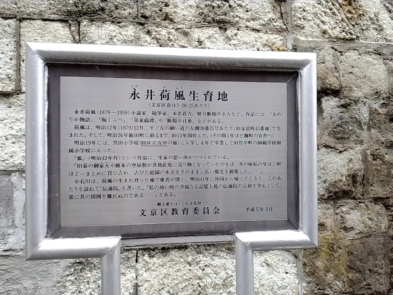 文京区教育委員会が作成した案内板が立っていますが、周辺の景色に溶け込んで、気が付きにくいです。
