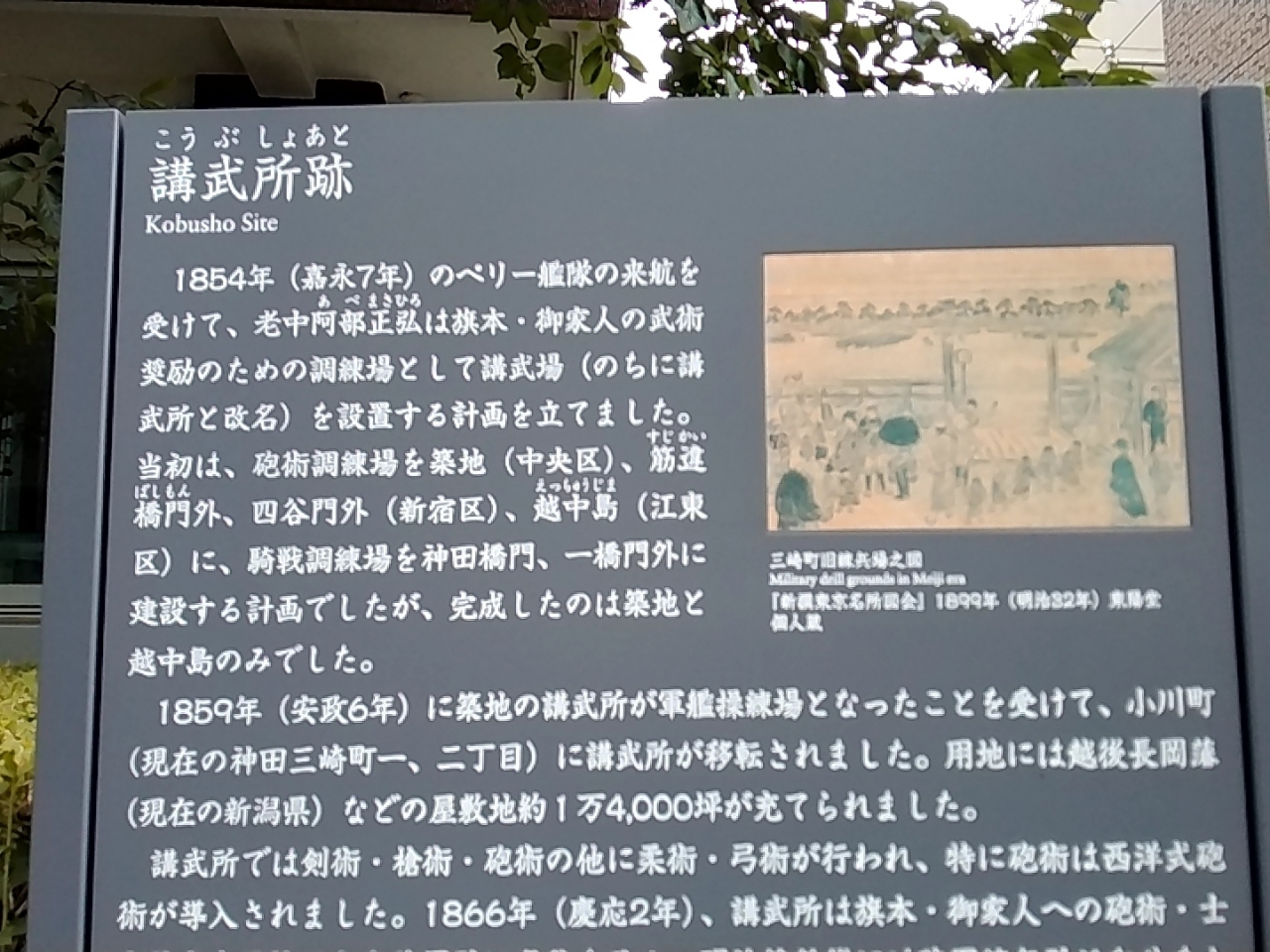 ちなみに、講武所というのは、ペリー来航後の政情から、旗本・御家人に剣術・槍術・砲術などを学ばせるために、幕府が設けた施設のことだそうです。
