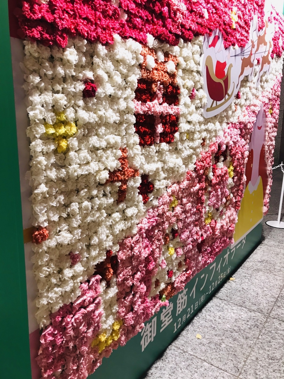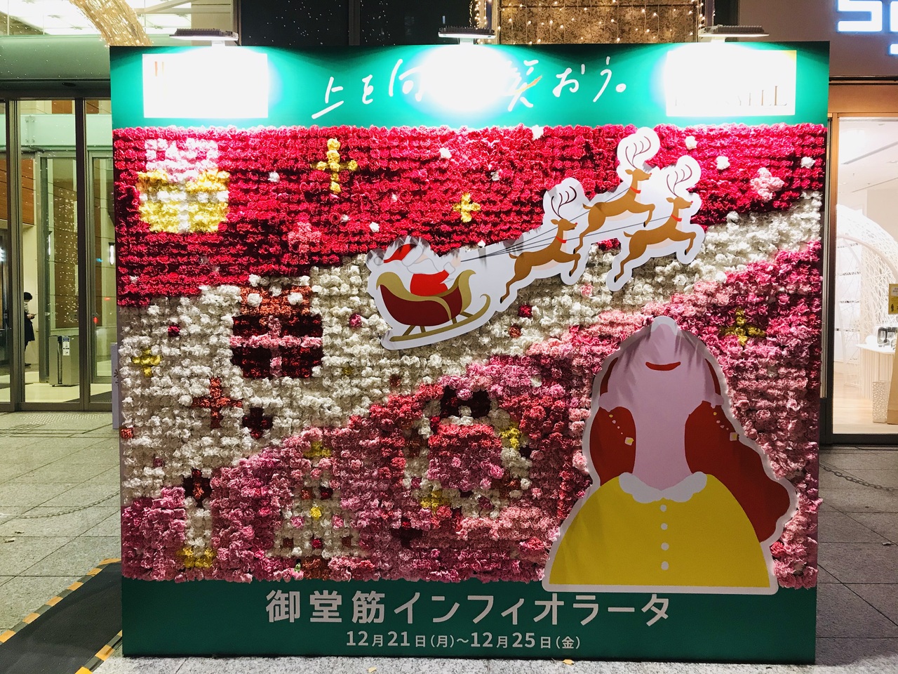2020年12月21日~25日の期間、御堂筋の5つの会場で大阪インフィオラータの花絵が展示されました。