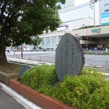 「品川駅創業記念碑」は、品川駅高輪口を出てすぐ、第一京浜に面した植込みの中にあります。品川を訪れるのは夜遅くのフライトや新幹線を利用した際のことが多く、こちらの史跡も人も灯かりも少ない中で見ることがほとんどでした。今回、平日の昼間に眺めてみると、周りを鮮やかな緑に囲まれ、とても絵になる光景だと感じました。