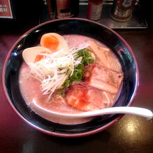 二条城の近くにあるラーメン屋で、名前がよかったので利用いたしました。七福神ラーメンに味玉をつけけました。着丼までの時間がとても早く、濃厚なスープで美味しく頂けました。観光地というだけあって、英語などのメニューもありました。