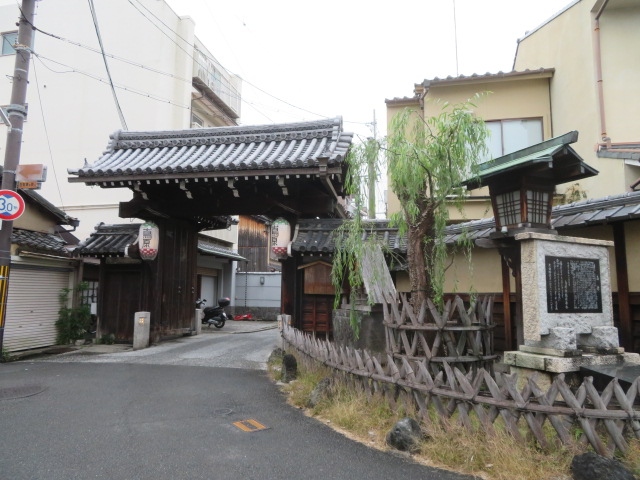 島原は、豊臣秀吉ゆかりの場所でもあります。江戸時代の島原は、単に遊郭にとどまらず、詩歌連俳などの文芸が盛んでした。島原大門は、その島原の入り口で、門のそばにある小ぶりではありますが、柳の木が遊廓の雰囲気を漂わせていますね。