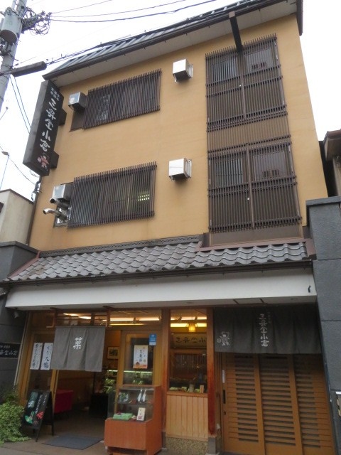 地元の方に聞くと、島原の大門から続く通りが嶋原の商店街となりますが、アーケードもなく、お店もさほどないですが、島原らしい古い家も並んでいます。ここにある三昇堂小倉は、外観も島原にマッチしていて、老舗の風格が漂っています。