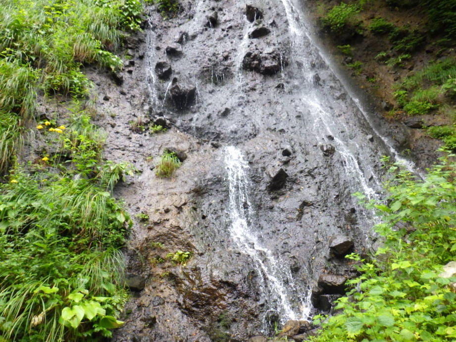 「天然石の橋」を渡ると対岸には「祓川神社」と背後に「須賀滝」がありました。「須賀滝」は1654年に月山の山麓水呑沢から約8kmの間を引水して祓川の懸崖に落した人工の滝だということです。何かを洗い流すような綺麗な滝でした。