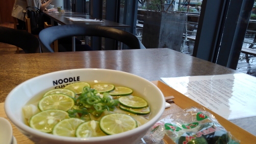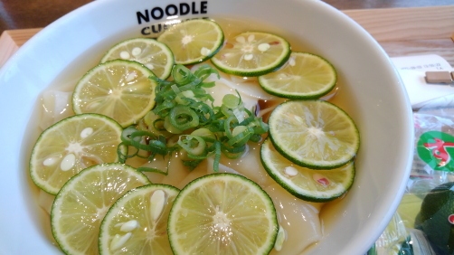 冷たい「すだちのきしめん」をいただきました。今月のキャンペーン?!で、持ち帰りのすだちがプレゼント。回転は早いと思います。