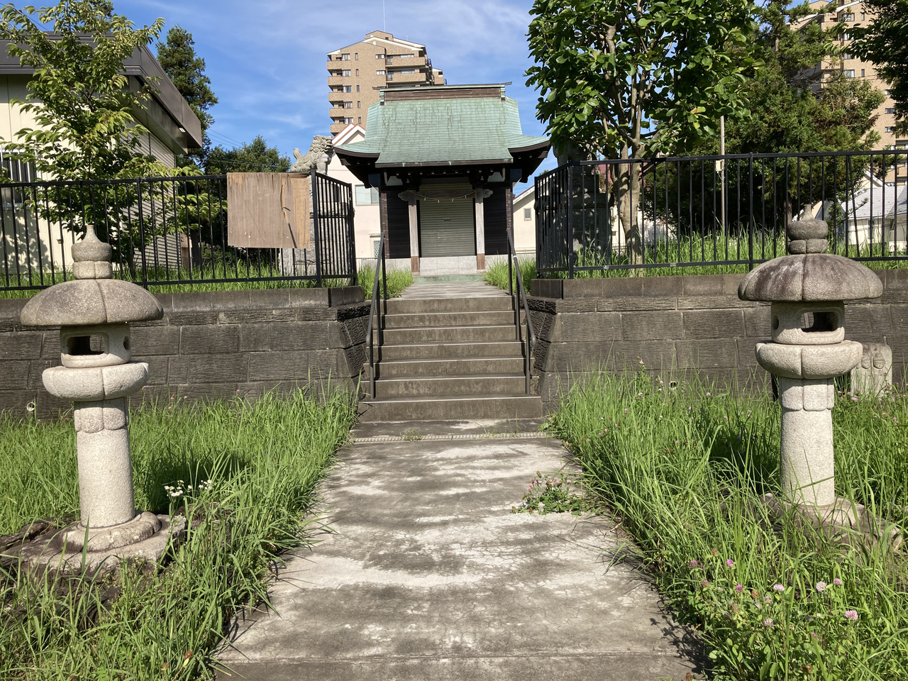 お社がかわいらしく、周りの新興住宅地の、一戸建ての一区画にあります。