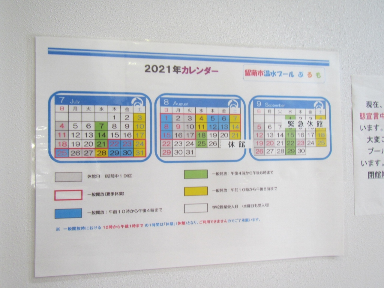 北海道の緊急事態宣言で2021年8月27日~9月12日の間、プールが休館となっています。