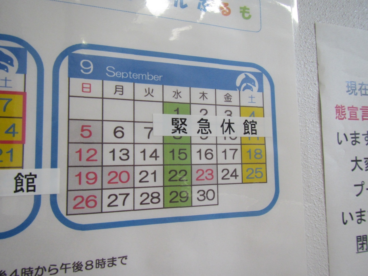 北海道の緊急事態宣言で8月27日~9月12日(2021年)の間、2階プールのみ休館