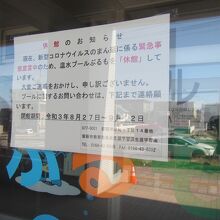 建物は、2階がプールで1階は休憩スペースや沿岸バスの待合スペースが入っていますが、休館で閉鎖されているのは2階のプールのみです。