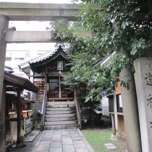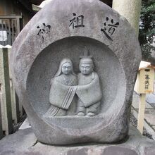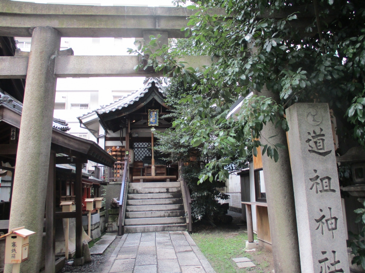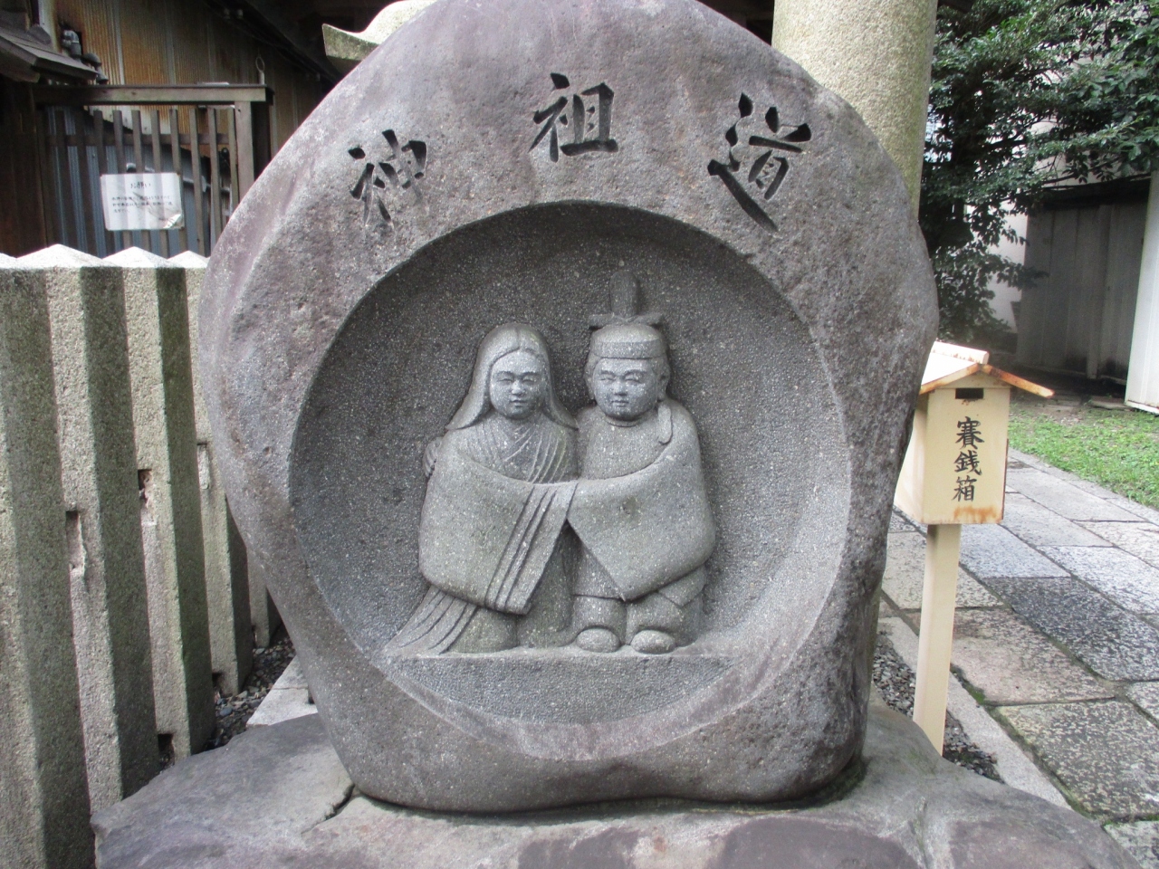 京都駅から北西側に徒歩数分、ビルの谷間にある神社です。京都駅の近くとは思えないほど静かです。前に来たことがあり、今回はたまたま通りかかりました。鳥居の横の夫婦の石像がほのぼのしています。夫婦円満や縁結びの神様としても信仰されています。