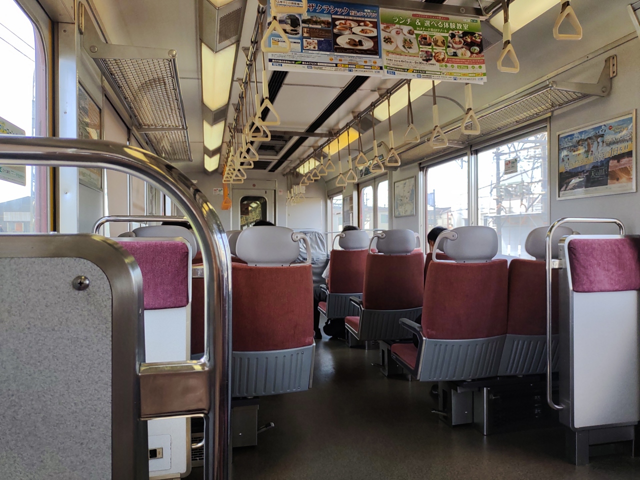 名古屋駅から乗車しました。駅員さんも親切でした。急行は、特急料金を払わなくても、けっこう早かったですし、快適でした。2種類の車両があり、1つは横並びでした。もう1種類は進行方向を向いた座席で、足を乗せるバーもありました。