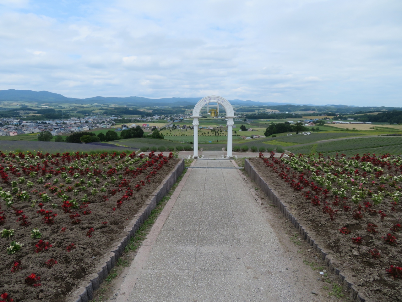 展望台まで車で行ける事を知らず、下の駐車場から歩いて展望台まで登りましたが、かなりきつかったです。展望台からは満開の早咲きラベンダーや富良野市街地を見渡す事ができます。恋人たちのデートスポットにもなっているようで、ウエディングの撮影をしているカップルもいました。
