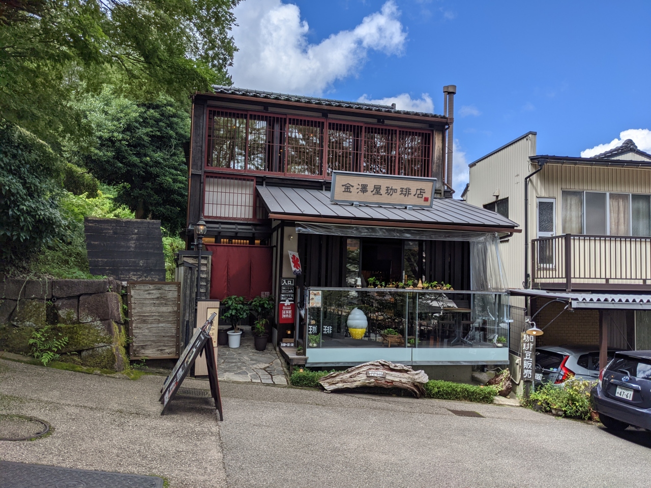 金沢城の黒門前にある味わいのある珈琲店。早朝に散歩がてら立ち寄りました。2Fからお濠を眺めながらのコーヒーはとてもワクワクするものを感じました。水出しコーヒーで600円と観光地価格ながら雰囲気が素晴らしく気に入りました。
