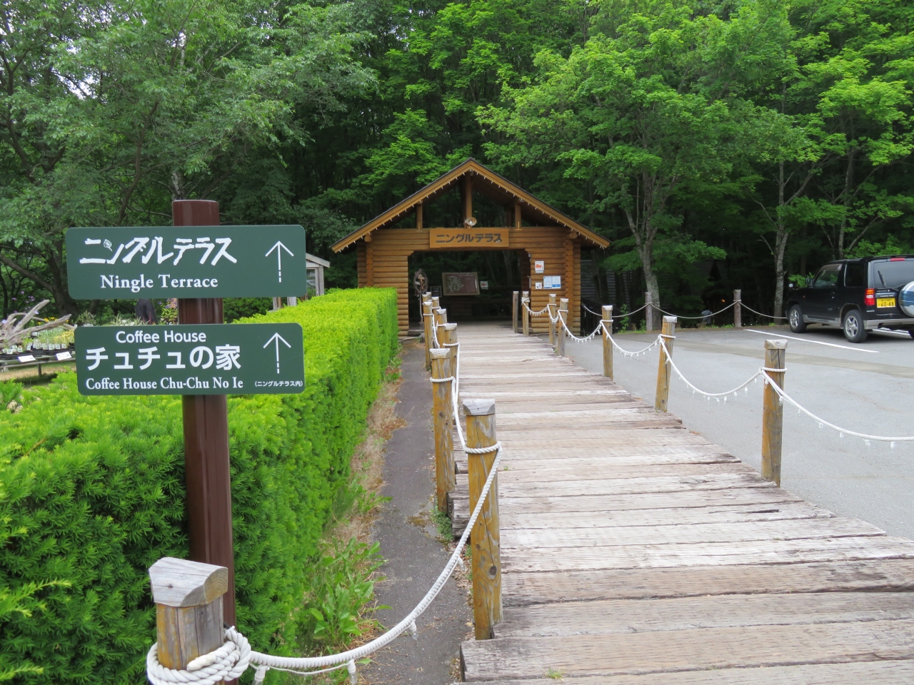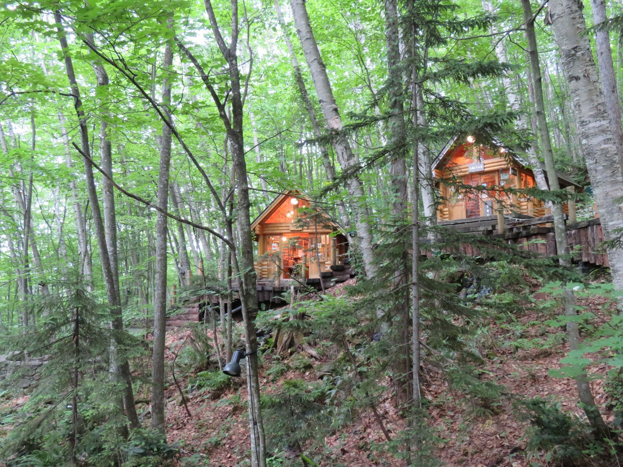 新富良野プリンスホテル敷地内にある森の中に広がるショッピングエリアです。木でできた遊歩道沿いに15のロッジが点在していますが、コロナ禍のせいで殆どのお店が休業していました。森の中に入ると幻想的で本当に妖精が住んでるような錯覚に陥りました。