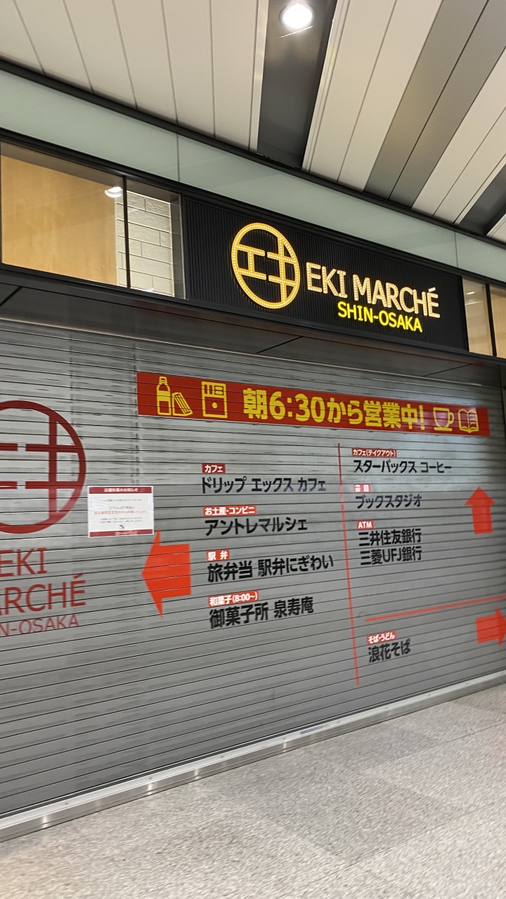 新大阪駅構内にあるエキマルシェ新大阪。こちらの敷地はJR西日本なので、JR線乗り換えには非常に便利な場所。イートインスペースもありますが、いまは椅子の数などが減らされています。お弁当を買うにもいいお店が多いですね。