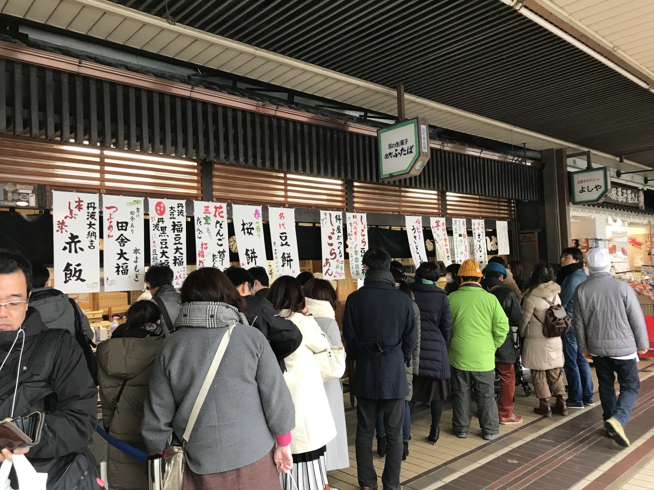 出町ふたばは、創業明治32年の京都で一番人気の豆餅を売っているお店です。大体黒豆の入った大福は豆大福とか塩大福とか呼ばれますが、ここの店では豆餅と呼ばれています。塩茹でされた大きめな黒豆がたくさん入っていて飽きがこないおいしさです。豆は餅中の餡子の甘さを引き締め、食感と風味を与えていておいしいです。いつも買いに来られている人が多いのでが、我慢して買っています。