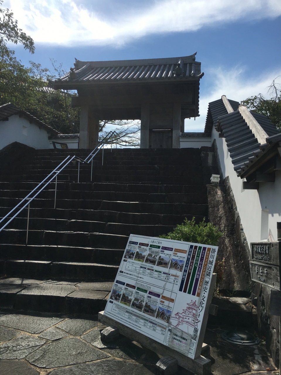 橋を渡ると城で、天守閣は小さめでコンパクトでした。少し高台にあるため掛川市内を見渡すことが出来ました。堀等も残っていて、門は赴きがありました。門の横には掛川城の模型があり、地形がよく分かる模型でした。緑多い場所です。