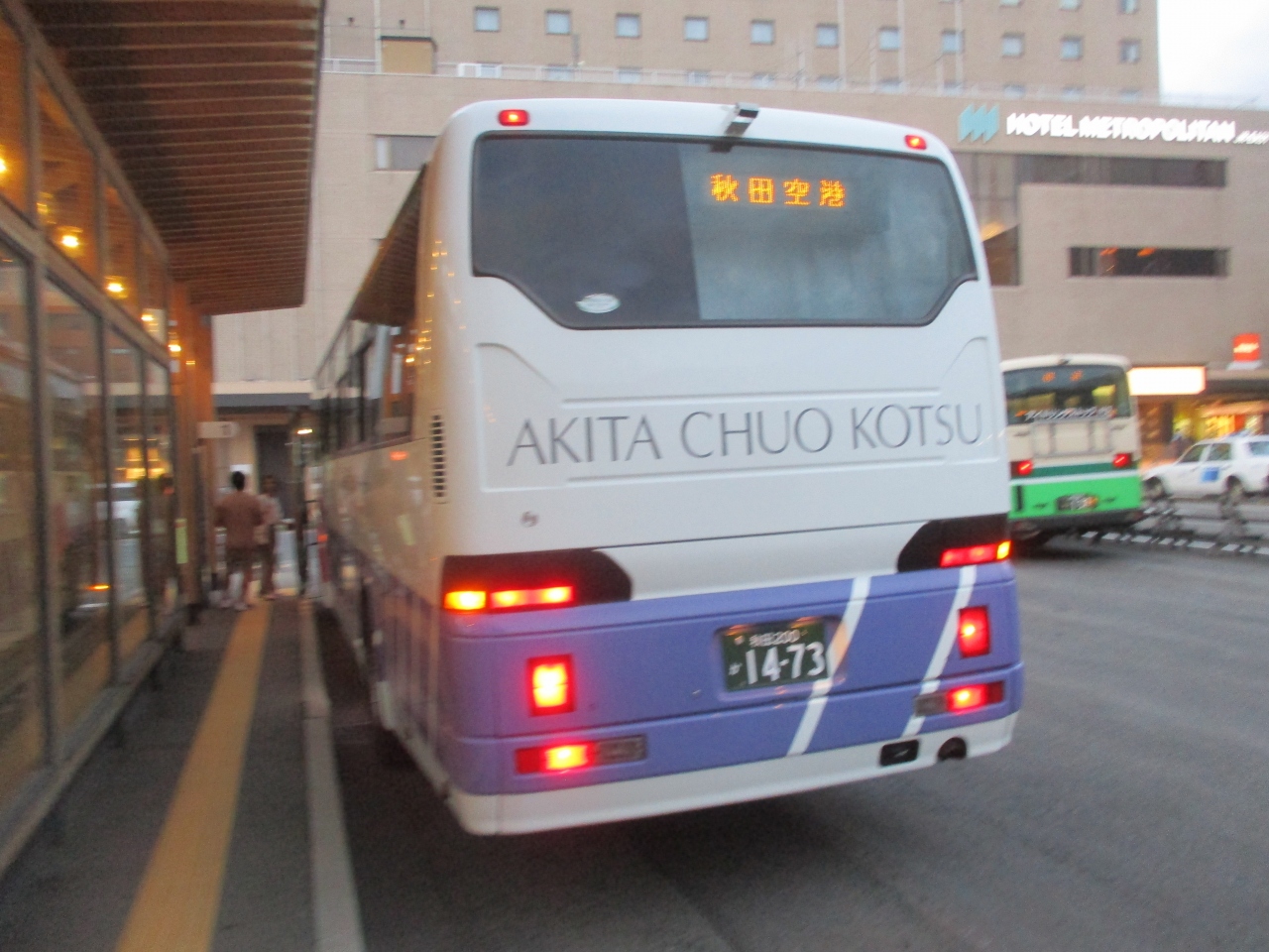 秋田空港にも空港リムジンバスがありました。鉄道駅がないので、空港-市内間の移動はバスかタクシーになります。ノンストップではなく、途中、何カ所か停車して秋田空港まで50分の所要時間でした。整理券を採用して、距離によって運賃を設定しており、駅から空港まで片道950円でした。