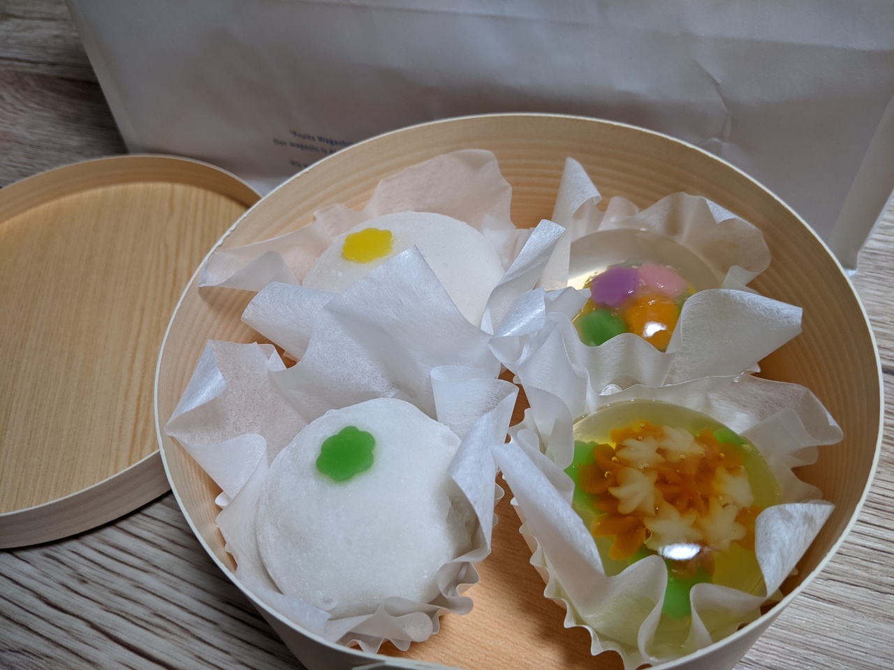 以前何かで瓶詰め羊羹や瓶詰めみたらし団子を見て知ったお店です。商品は一見洋菓子のよう。とくに「水鞠シリーズ」は美しさにうっとりでした。柚子餡玉に型抜きされた羊羹がくっつき寒天は白ワイン味。すごく上品な味です。しかもこの容器、曲げわっぱで2回位なら汁物もしみない造りになってるそう。手土産に絶対喜ばれるお店です。