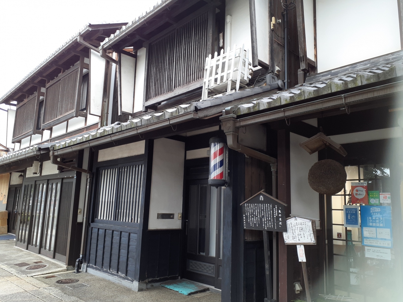 彦根城を見学後、お堀にかかる京橋を渡ると白壁と黒格子の町屋風に統一された街並みが見えます。飲食店、お土産店などが並びいい雰囲気です。ただし真ん中を3車線道路が通っているので片側ずつ歩くことになるのがちょっと不便。