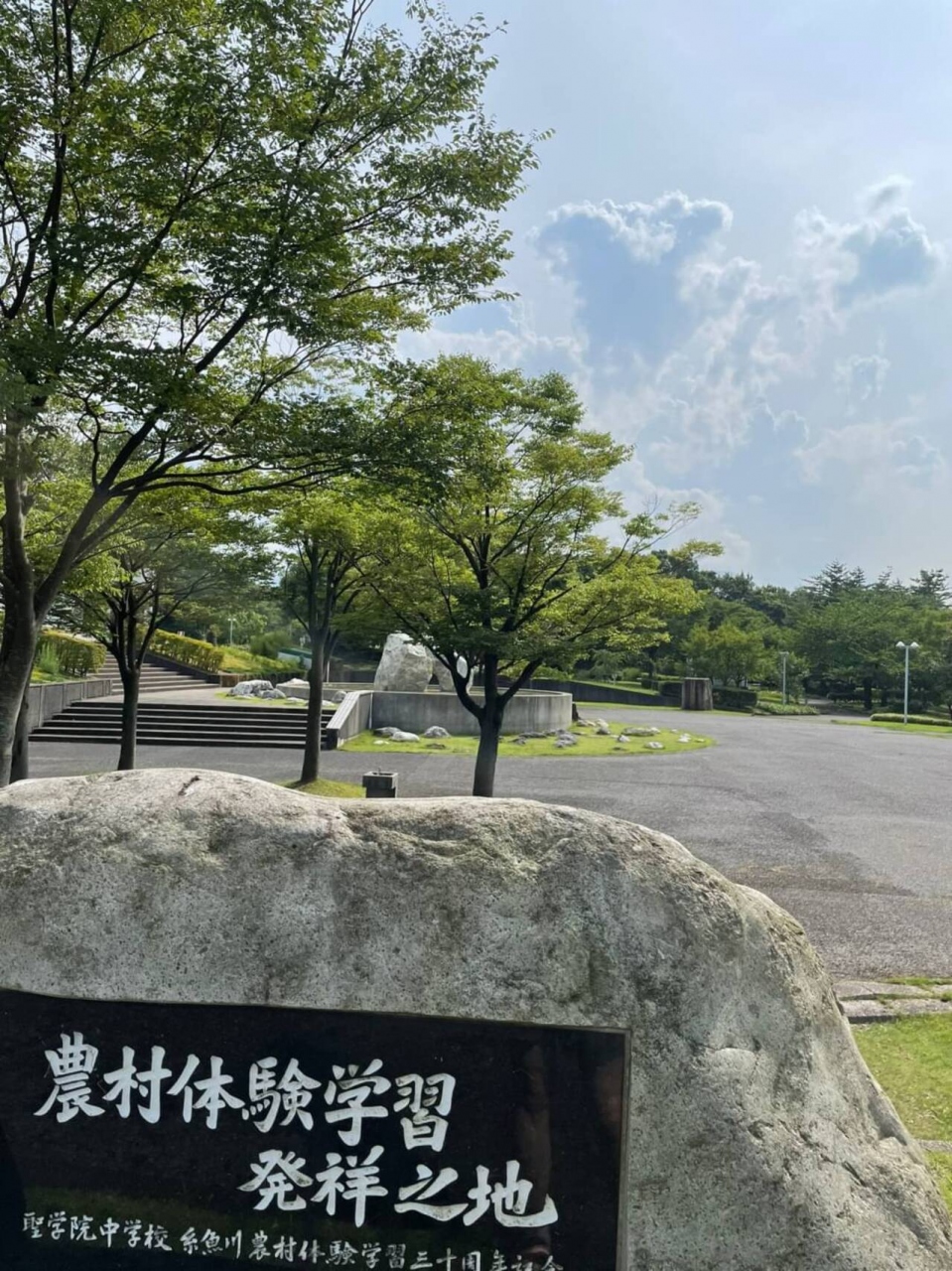 農村体験学習発祥の地の石碑があるのを見つけました。こんなものまで発祥の地の石碑があるのかーとびっくりでしたが、自然豊かな土地ならではの石碑だなとも感じました。