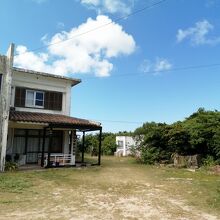資料館と分かるのは「なんた浜」側の道路の入口にある看板と庭にある石で作られた“臼”?のようなものくらいでした。