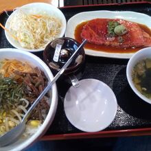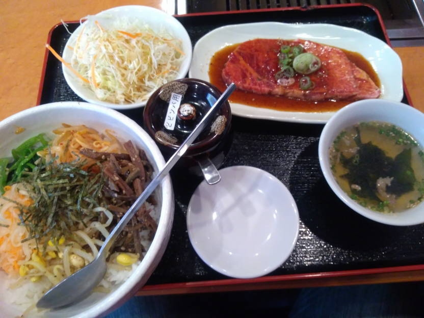 「焼肉 横濱慶州苑 菊名店」でランチをいただきました。「得々定食」1050円と「チゲ鍋定食」900円を注文しました。いつもの「得々定食」はサーロイン肉とビビンバご飯のセットでした。サーロイン肉はジューシーで美味しかったです。ビビンバもぶれずに美味しかったです。「チゲ鍋定食」は初めてでしたが、家でも作れそうな味付けだったので、やっぱり焼肉屋さんではお肉のほうがいいのかなと思いました。