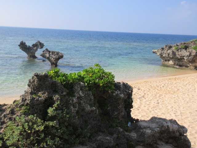 古宇利島にある有名観光スポットです。場所は奥の方、ティーヌ浜という場所にあります。JALのCMで嵐が出演した際にここがロケ地になったこともあって、とても観光客が多い場所なのですが、行くまでの道が細く歩きにくいです。岩は確かに珍しいし、景色もいいので写真スポットとしてとてもいいです。