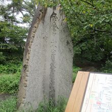 宇治川渓流と旧高瀬川の合流点は川の近くまで降りれるようになっています。そこに記念碑がありました。大きな石の碑です。角倉了以は、戦国期の京都の豪商です。京都伏見間の水運を開通させ、大阪とも結びつき、伏見の発展に寄与しました。石碑は角倉了以の偉業を讃えるものです。