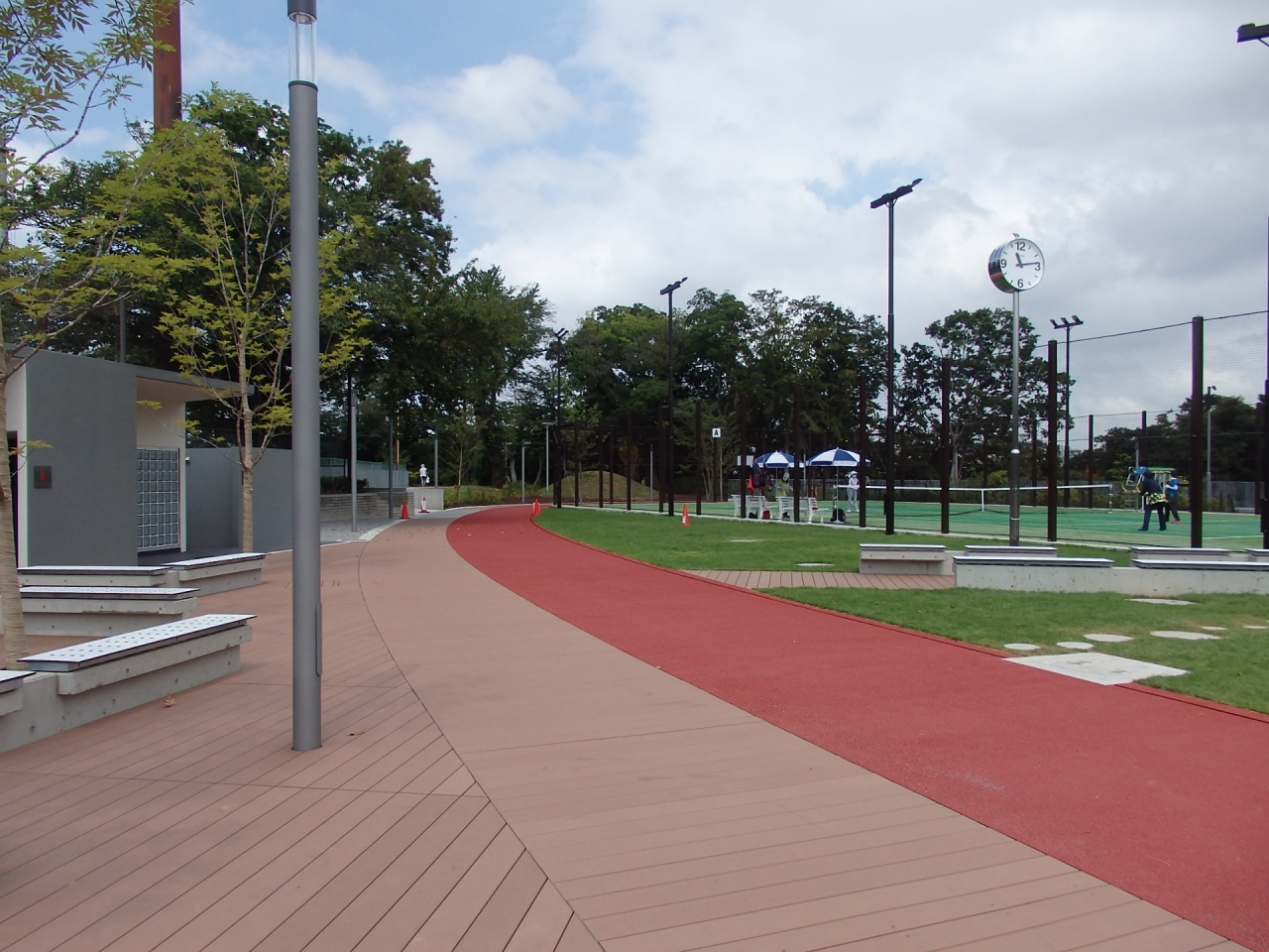 板橋区立のスポーツ施設の集まった公園です。野球場、サッカー等ができる球技場、テニスコート、ウレタン舗装された全周280mのループトラック、洋弓・和弓場、体育館等が整えられています。遊具や休憩ベンチ等が中心の憩いの場ではなく、スポーツ運動公園です。花の季節は別にして見所はただ一つ、荒川にかかる戸田橋の親柱です。四代目戸田橋が架け替えられたとき、三代目は解体され、ここ小豆沢公園に東京都側の親柱のみが保存されることになりました。昭和初期完成の橋ですが、古風な歴史を感じさせる親柱です。親柱というのは、高欄の端にあるのが親柱で、橋の名前、竣工日等が表記されます。片側親柱には漢字、反対側の親柱には平仮名が表記されます